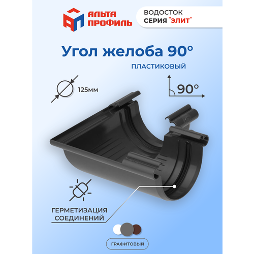 Угол желоба водостока 90 градусов ПВХ d125 мм цвет графит