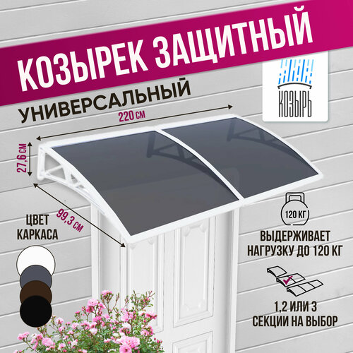 Защитный универсальный козырек, двойной, ПК сотовый темный 6 мм