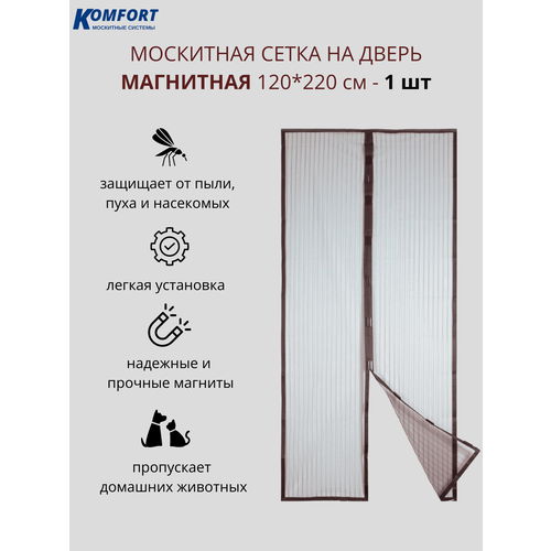 Москитная сетка на дверь магнитная 120*220 см коричневая 1 шт