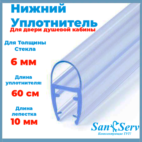 Нижний силиконовый уплотнитель для стекла двери душевой кабины U-41011-6-60 толщиной 6 мм, длинна 60 см