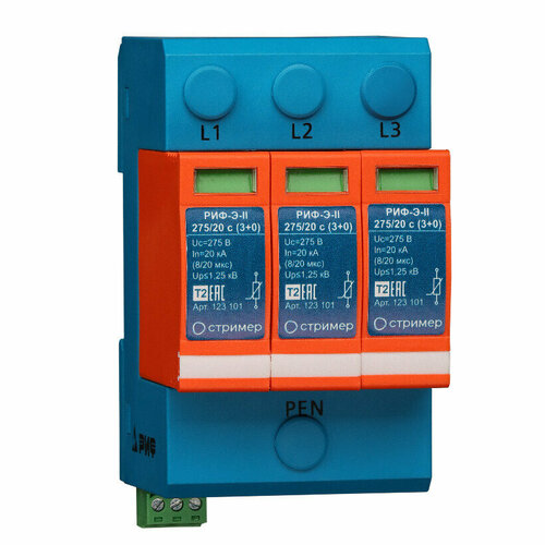 Устройство защиты от импульсных перенапряжений УЗИП РИФ-Э-II 275/20 с (3+0) Стример (123 101)