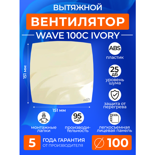Вентилятор вытяжной с обратным клапаном ERA WAVE 100C IVORY, 100 мм в ванную, в туалет, на кухню, слоновая кость