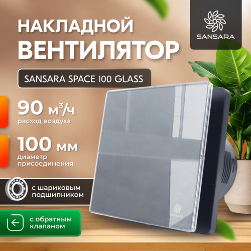Накладной, вытяжной вентилятор, с обратным клапаном Sansara Space Glass Silver 100мм