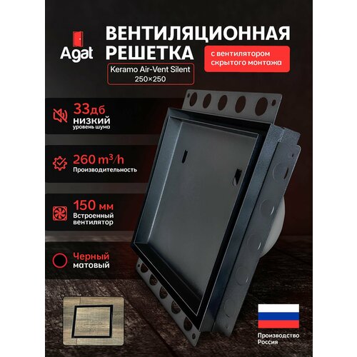 Вентилятор скрытого монтажа 150 мм Keramo Air-Vent "Agat" 250х250 под плитку (Черный)