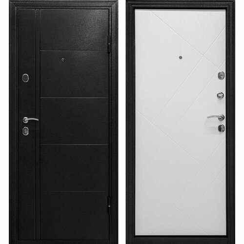 Входная железная дверь для дома с терморазрывом ATLANTIK с внутренней панелью с зеркалом фацет-белый софт, размер по коробке 880х2050, левая