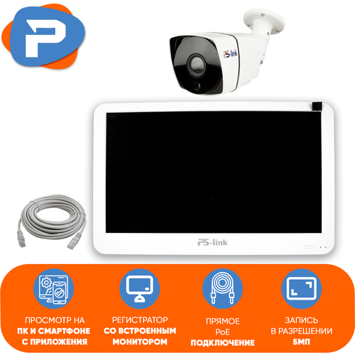 Комплект видеонаблюдения PS-link KIT-C501LCD IP-PoE/ монитор 10"/ 1 уличная камера/ 5 Мп