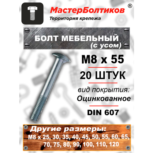 Болт мебельный с усом оцинкованный М8х 55 DIN 607 (20 штук)