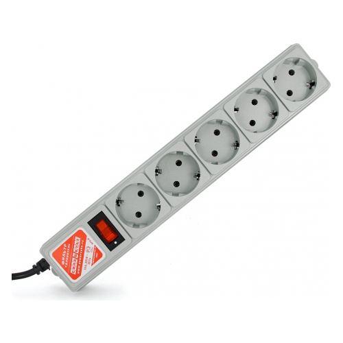 Сетевой фильтр 5 гнезд 3 метра с заземляющими контактами серый 10А/2,2кВт ПВС 3х0,75 B PowerCube