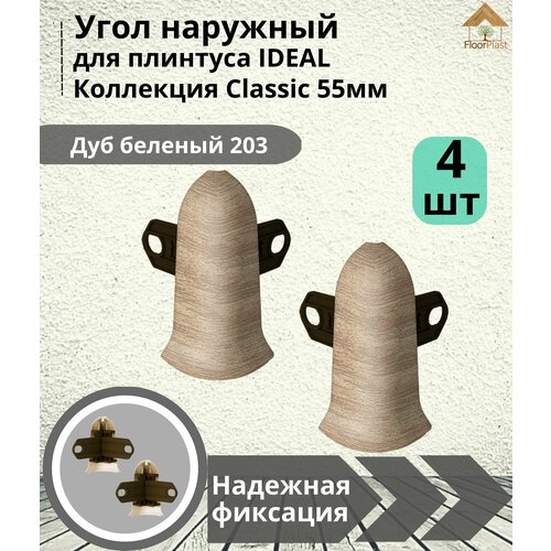 Угол наружный (внешний) для плинтуса Ideal (Идеал), коллекция Classic (Классик) 55мм, 203 Дуб беленый - 4шт.
