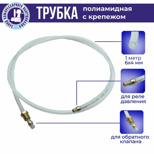 Трубка пневматическая полиамидная с крепежом для подключения пневморазгружателя реле давления с обратным клапаном, 6х4 мм, 1 метр