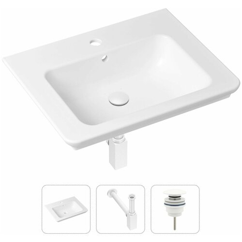 Врезная раковина в ванную Lavinia Boho Bathroom Sink 21520547 в комплекте 3 в 1: умывальник белый, донный клапан и сифон в цвете