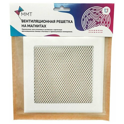 Вентиляционная решетка MAGTRADE на магнитах 150х150 мм. (РП 150 сетка), металлическая, белая матовая решетка с москитной сеткой.