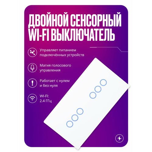 Умный выключатель Wi-Fi сенсорный на 2 поста (3 кл + 3 кл), с нулем и без нуля в одной рамке, умный дом
