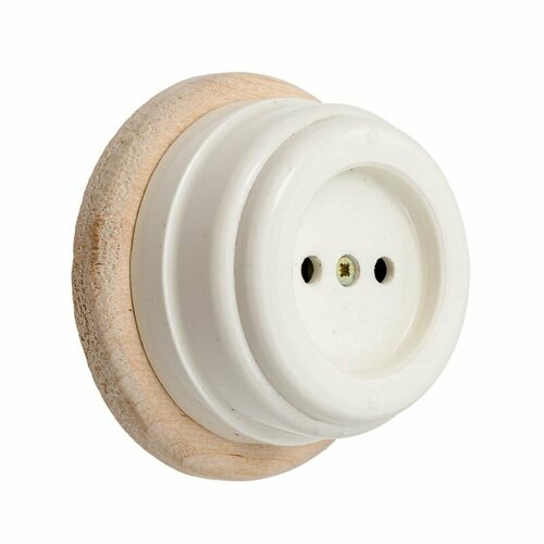 Ретро розетка б/з керамическая, слоновая кость, подрозетник береза, без заземления, накладная бежевая для открытой наружной проводки под винтаж Zion