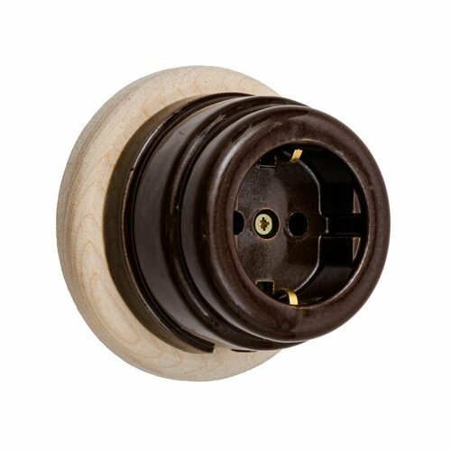 Ретро розетка б/з керамическая коричневая, подрозетник береза, без заземления, накладная для открытой наружной проводки под винтаж Zion