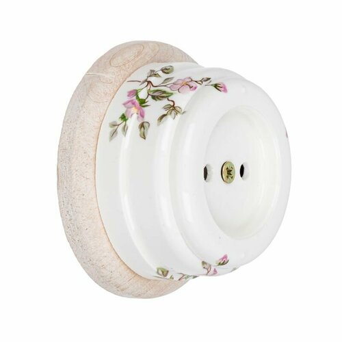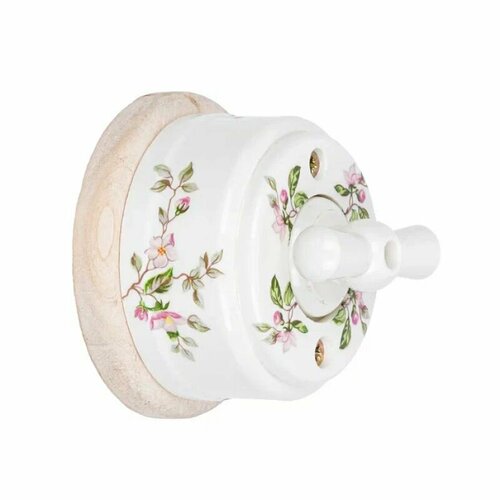 Выключатель ретро одноклавишный (проходной) керамический с ручкой бантик, серия нежность, подрозетник береза Zion