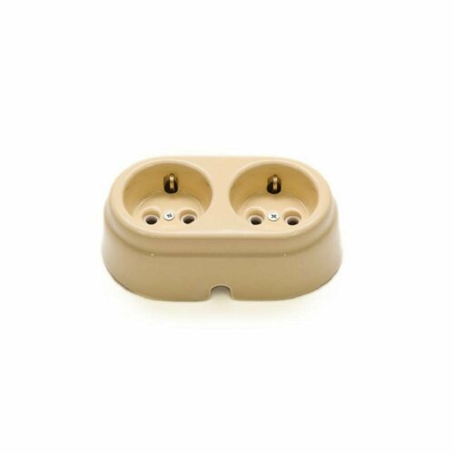 IE Ретро розетка двойная с заземлением, керамика, цвет песочное золото