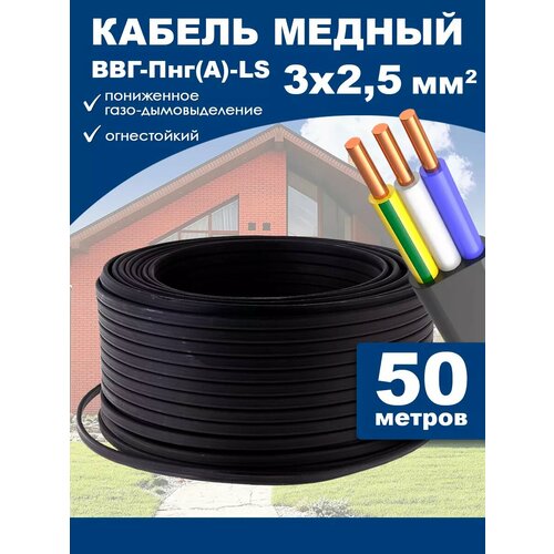 Кабель электрический двухжильный силовой медный ВВГ-Пнг(А)-LS ГОСТ 2*1,5мм2 бухта 50 метров "Наш кабель"