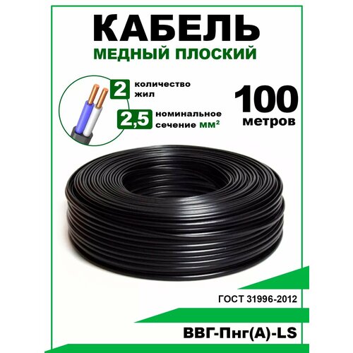 Кабель электрический двухжильный силовой медный ВВГ-Пнг(А)-LS ГОСТ 2*2,5мм2 бухта 100 метров "Наш кабель"