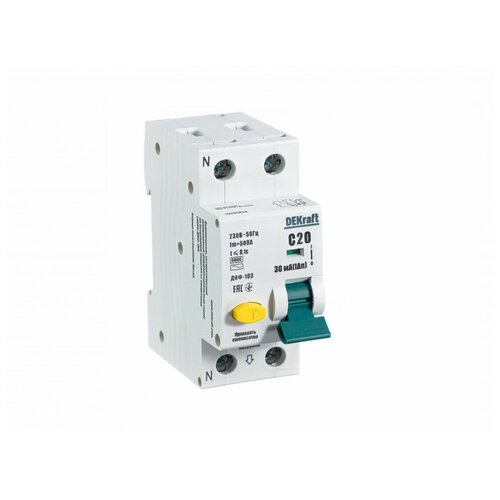 Дифференциальный автомат DEKRAFT 1Р+N 20А 30мА тип AC С ДИФ-103 6кА, 16205DEK