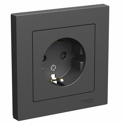 Розетка 16А с заземлением со шторками в сборе (Базальт), Systeme Electric AtlasDesign