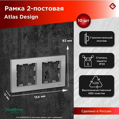 Рамка 2-постовая алюминий, Schneider Electric AtlasDesign (комплект 10шт)