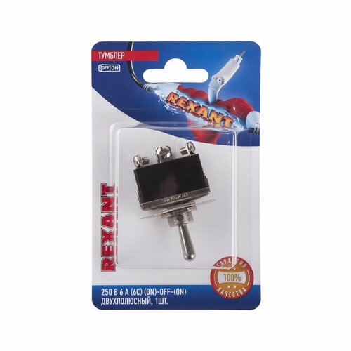 Тумблер двухполюсный Rexant (ON)-OFF-(ON) (250В 6А (6c)) (KN-223) {06-0329-B}