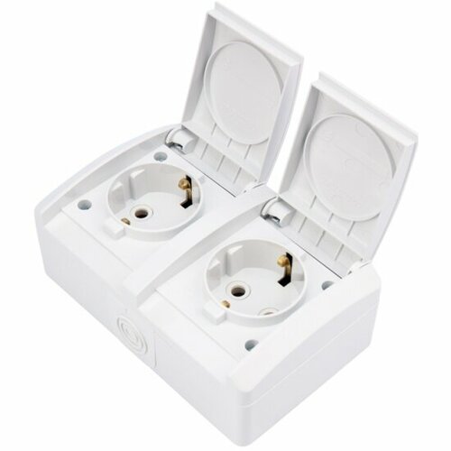 Блок из 2 розеток влагозащищенный горизонтальный KRANZ INDUSTRIAL открытой установки с заземлением, 250 В/16 А