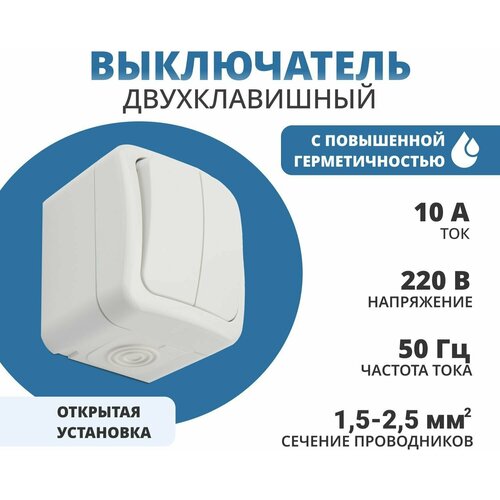 Выключатель влагозащищенный двухклавишный KRANZ открытой установки, 250 В/10 А