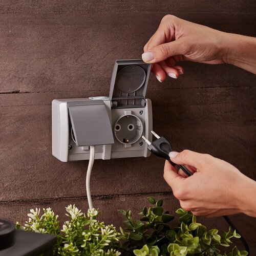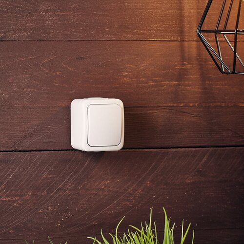 Защитная крышка на лицевой поверхности защищает выключатель от попадания брызг воды. Отлично подойдет для дачи, ванной комнаты, бассейна и улицы, при наличии навеса, защищающего от прямого попадания влаги.