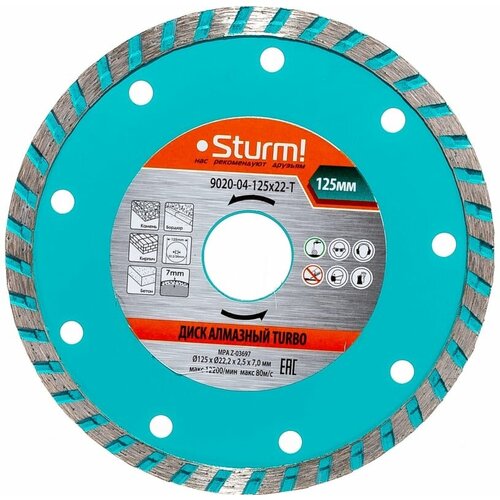 Диск алмазный Turbo по железобетону (125х22.2/20 мм) Sturm 9020-04-125x22-T
