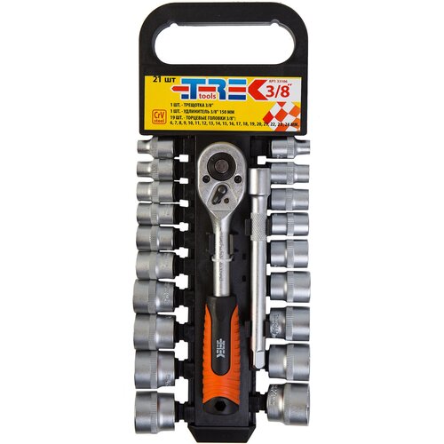 Набор головок 21 предм. 3/8" с трещоткой и удлинителем 150 мм TREK №33106
