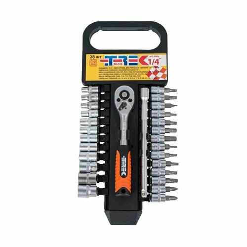 Набор головок + биты TREK №33028 28 предм. 1/4" с трещоткой и удлинителем 150 мм