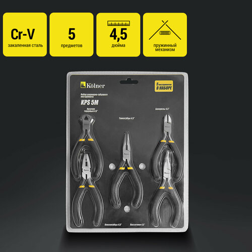 Набор шарнирно-губцевых инструментов Kolner KPS5, в кейсе, 5 предметов