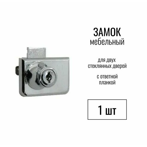 Замок мебельный №805 (409) для двух стеклянных дверей с ответной планкой, 1 шт