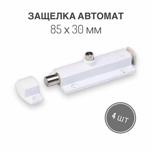 Защелка автомат, 85x30 мм, белая, 4 шт