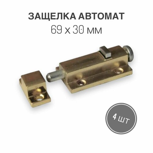 Защелка автомат малая, 69х30 мм, золото, 4 шт