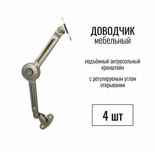 Доводчик мебельный, Подъёмный антресольный кронштейн с регулируемым углом открывания Clock, 4 шт