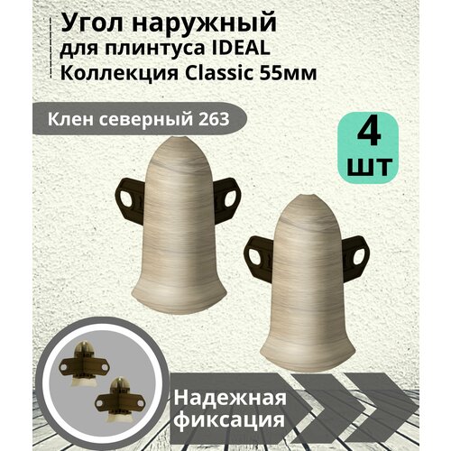 Угол наружный (внешний) для плинтуса Ideal (Идеал), коллекция Classic (Классик) 55мм, 263 Клен северный - 4шт.