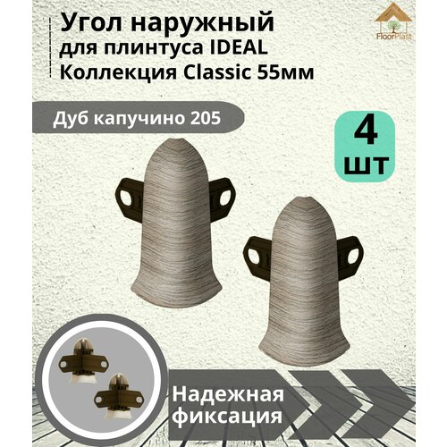 Угол наружный (внешний) для плинтуса Ideal (Идеал), коллекция Classic (Классик) 55мм, 205 Дуб капучино - 4шт.