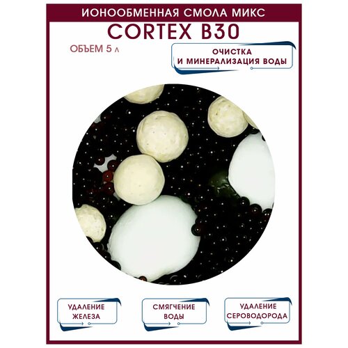 Ионообменная смола микс Cortex B30, умягчение воды, удаление железа, органики и сероводорода, 5 литров