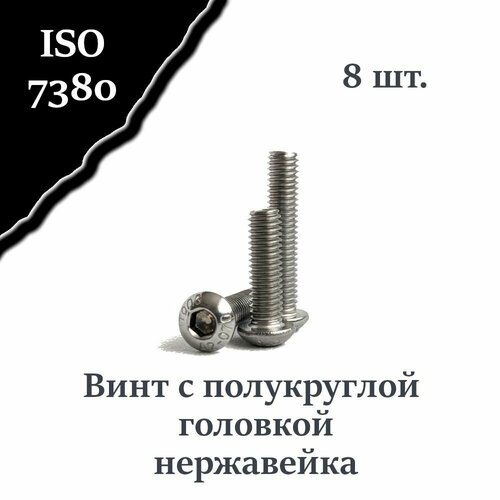 Винт ISO 7380 А2 М8х18 с полукруглой головкой, нержавейка, 8 шт.