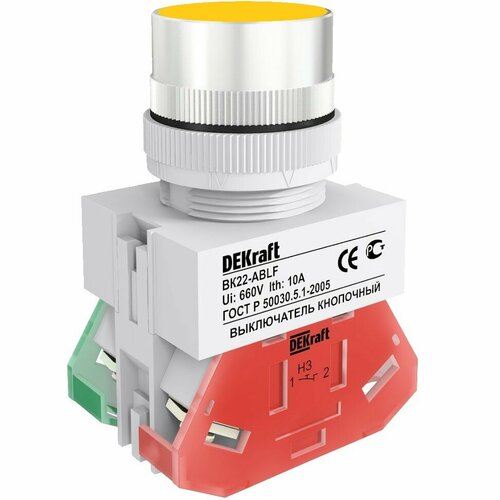 Выключатель-кнопка DEKraft ВK-22 ABLF, D=22мм, без индикации, 220В, желтый