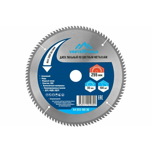 Vertextools Диск пильный по цветным металлам и пластику 255x100x30 АЛ-255-100-30