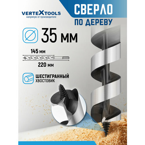 Сверло по дереву спираль Левиса (35х220 мм) Vertextools 444-35-220