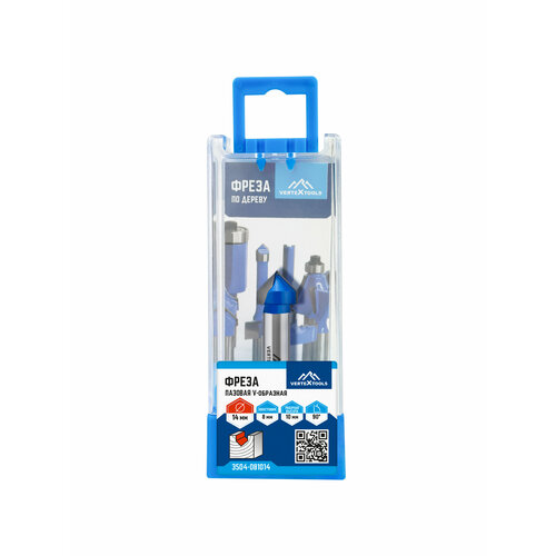 Фреза пазовая V-образная, хвостовик 8 мм, d-14 мм, h-10 мм, а - 90, l-45 мм vertextools 3504-081014