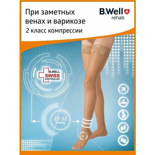 Чулки B.Well rehab JW-222 с ажурной резинкой, противарикозные, 2 класс natural 25 см