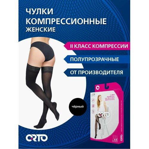 Компрессионные гольфы Orto 322 полупрозрачные 2 класс черные Norm L 100036315269