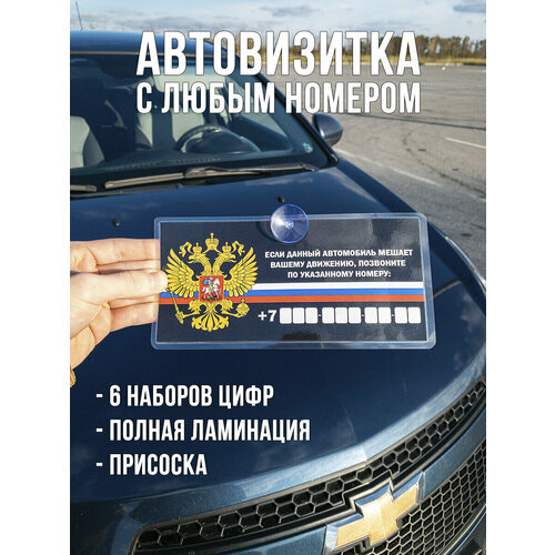 Автовизитка с номером телефона / парковочная табличка для авто герб РФ 101828833636