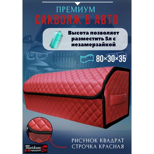 Органайзер для хранения в багажнике для машины/ Органайзер автоаксессуар 80*30*35 квадрат строчка красная окант черн 102038900812